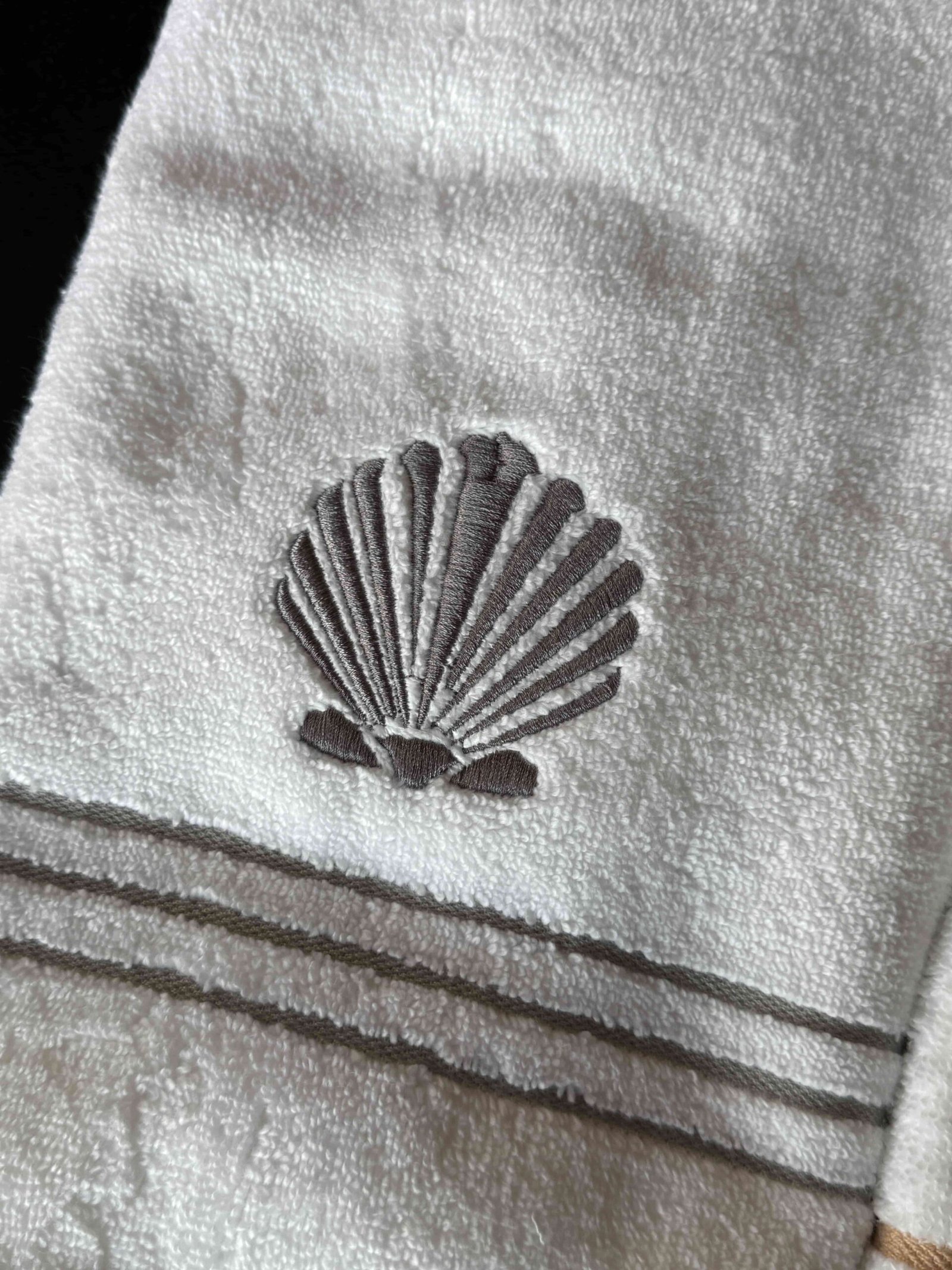 S/ 79.00¡Eleva tu look de playa o el confort en casa! Esta toalla de cuerpo está hecha en 100% algodón de 600 gr, ofreciendo una suavidad y absorción inigualables. El bordado de conchita y sus franjas grises le otorga un toque distintivo y la elegancia que transforma cualquier espacio, desde tu baño en Lima hasta los de la playa.