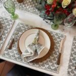 El Mantel Enya es sinónimo de elegancia atemporal. Impreso artesanalmente en la India con la técnica hand block printing, su diseño de hojas verde oscuro es perfecto para crear mesas hermosas: lo puedes usar como mantel navideño pero también en cualquier época del año.
