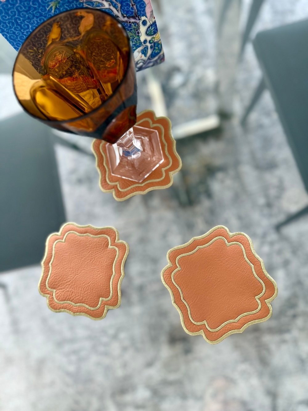 Después del éxito de los individuales Verona, vienen los posavasos, también confeccionados en vegan leather y bordados. Resistentes al agua, los puedes usar en la mesa junto a los individuales, o en tenerlos solos en el bar, tú eliges.