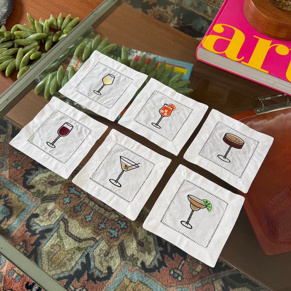 Este set es el complemento perfecto para elevar el momento del aperitivo o la «hora del cóctel» en casa. Lo que lo hace especial es que rompe con la formalidad tradicional del lino mediante un toque lúdico y contemporáneo, pero manteniendo siempre esa factura impecable que caracteriza a Sobremesa. Porque la verdadera anfitriona sabe que el lujo está en la intención.
