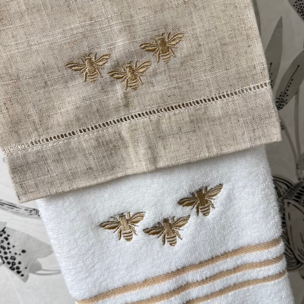 S/ 109.00Este set es la definición perfecta de lo que buscamos en Sobremesa: piezas que no solo decoran, sino que elevan la experiencia de quienes habitan (y visitan) tu casa. El equilibrio entre la belleza del lino y la utilidad de la felpa: unidos por un delicado bordado de abejas en hilo dorado.
