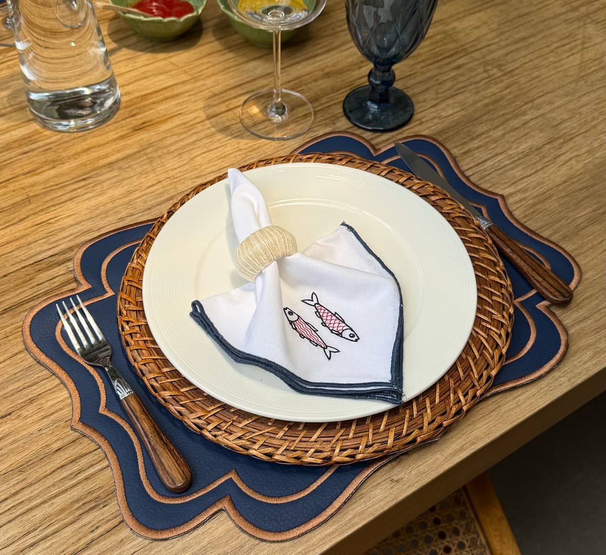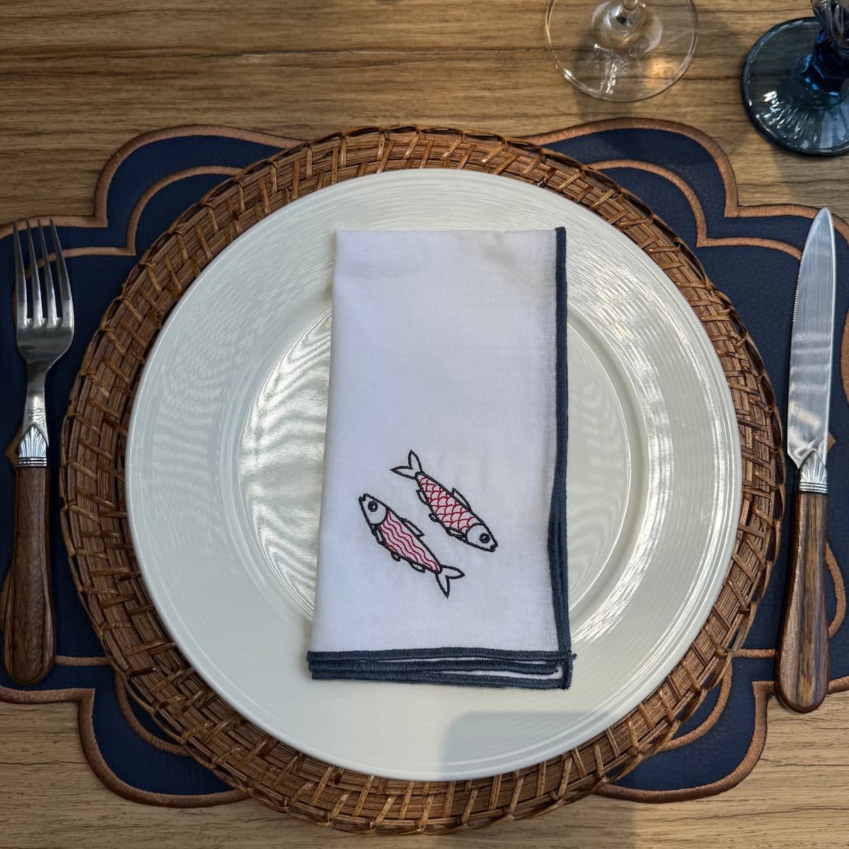 Medida: 38cm de diámetro.Individuales Belize Azul Acero con bordado en plata