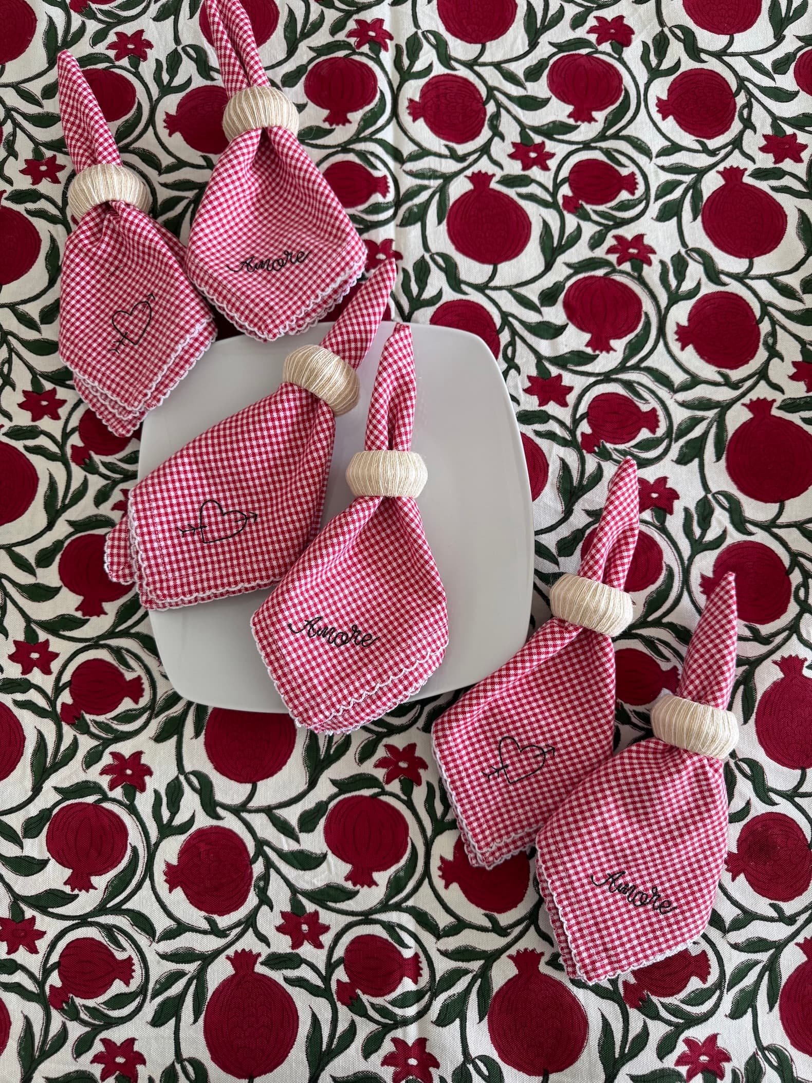Rango de precios: desde S/ 339.15 hasta S/ 407.15¿Buscas un mantel de Navidad distinto en tu mesa? Nuestro mantel Bangalore, de granadas y hojas verdes es la respuesta. Estampado artesanalmente en la India (con la técnica hand block printing), combina un espíritu festivo y ecléctico. Servilletas a juego disponibles para completar el table setting.
