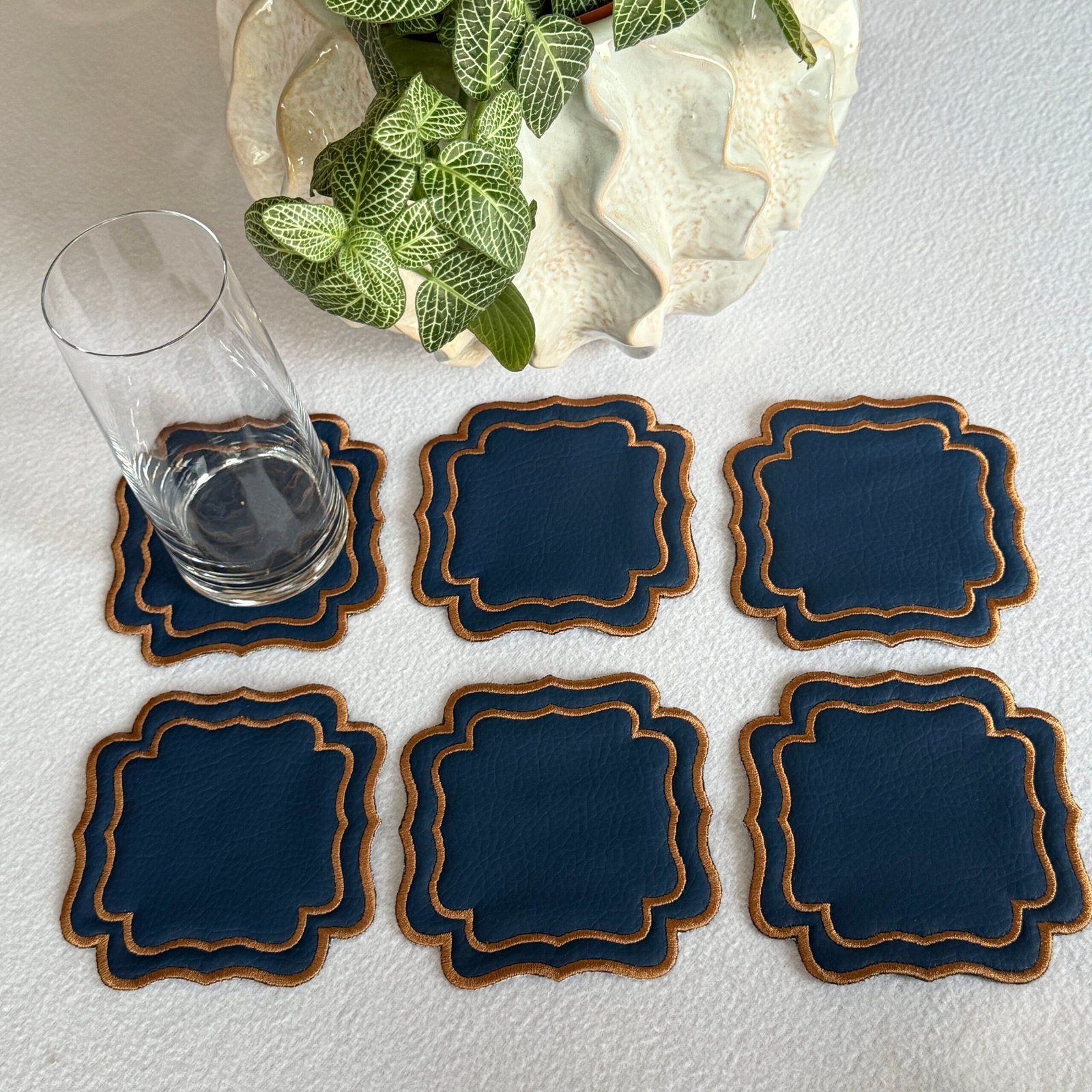 ¡El bestseller se expande! Ya están aquí los posavasos Verona: 6 posavasos de vegan leather bordado que son la sofisticación que tu mesa necesita. El regalo perfecto, presentado en un elegante gift box.