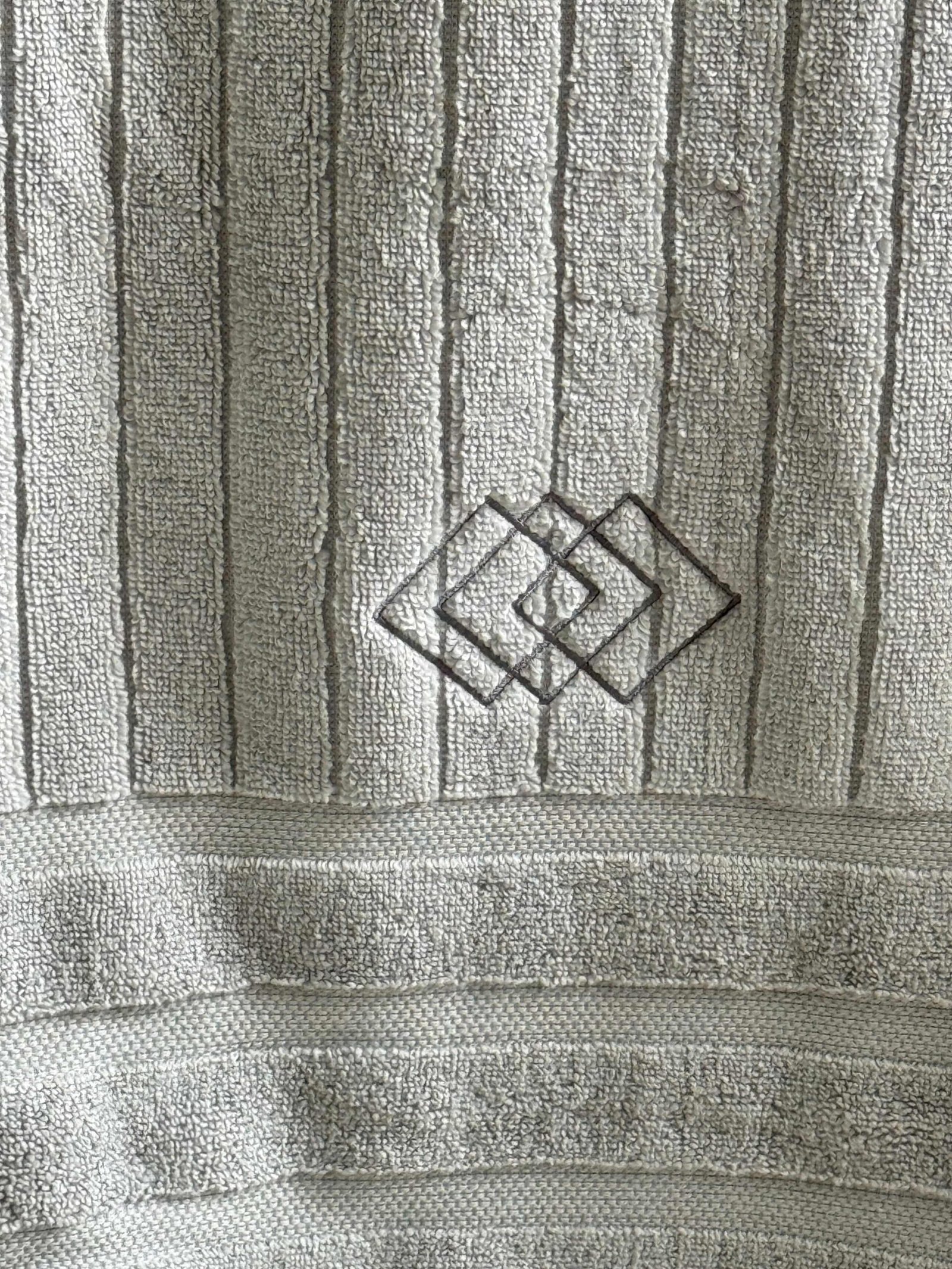 Envuelve tu cuerpo en la máxima suavidad. Nuestra toalla «Rombos» está confeccionada en 100% algodón de 600 gramos, lo que garantiza una absorción superior y una sensación de confort inigualable. Su tamaño extra grande ofrece una cobertura total, transformando tu rutina diaria en una experiencia de spa. El elegante diseño en color gris se realza con un delicado bordado de tres rombos en tono gris, añadiendo un toque de sofisticación atemporal a tu baño.Material: 100% Algodón/ 600 gr. / Bordados gris.