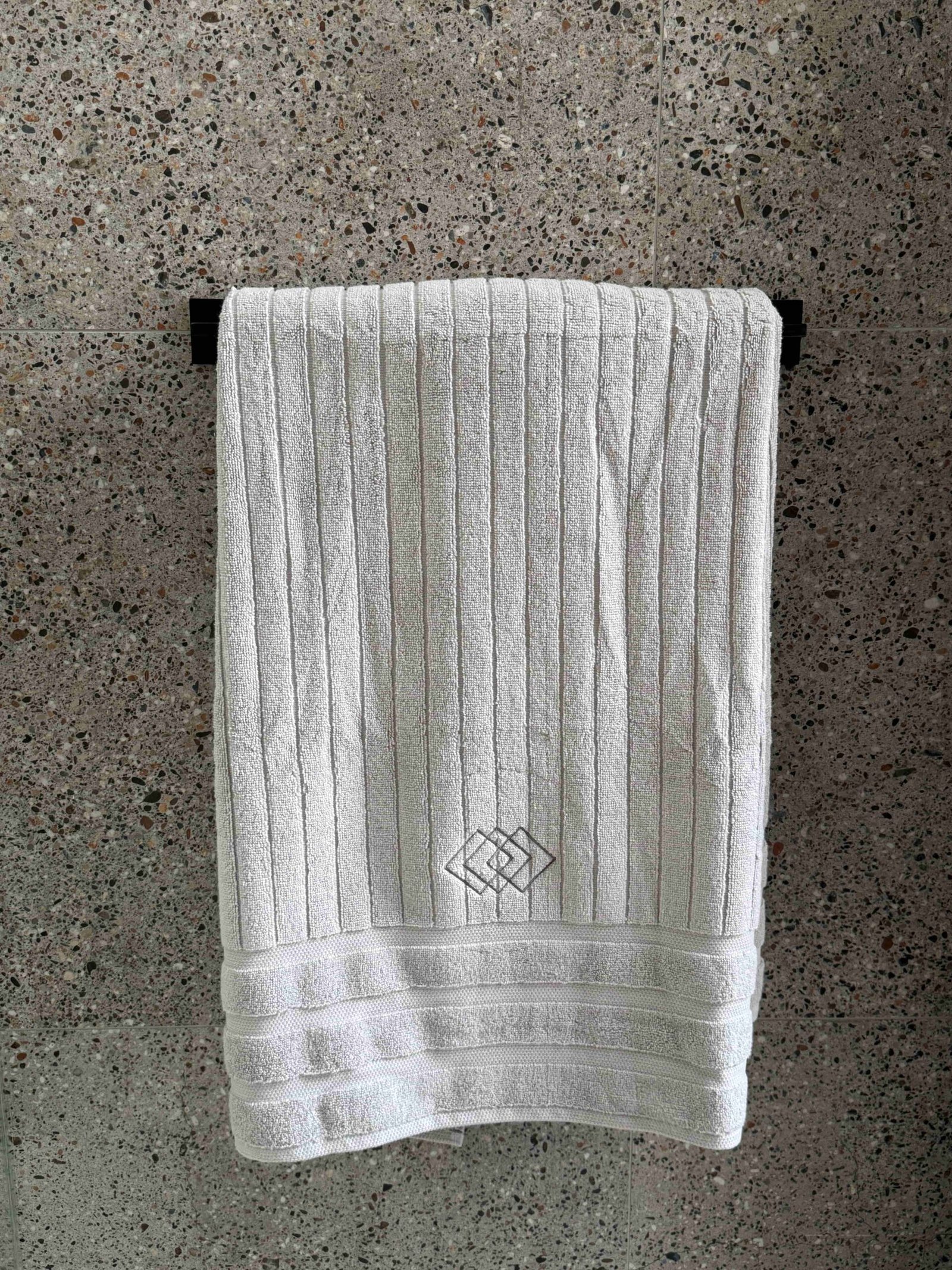 S/ 118.00Eleva la elegancia de tu baño con el set «Rombos». Este pack incluye nuestra toalla de cuerpo extra grande y la toalla de manos, ambas elaboradas en 100% algodón de 600 gramos para máxima suavidad y absorción. La combinación del color blanco con el exclusivo bordado de tres rombos en beige unifica el espacio con un toque de lujo sutil. Es el set ideal para renovar tu hogar o un regalo exquisito.